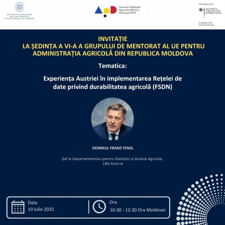 Desfășurat în format virtual, Grupul de mentorat UE a beneficiat de participare activă și discuții aprofundate, oferind reprezentanților Ministerului Agriculturii și Industriei Alimentare (MAIA), Biroului Național de Statistică a Republicii Moldova și altor instituții participante, o înțelegere mai detaliată a complexității tehnice și instituționale a sistemului FSDN.